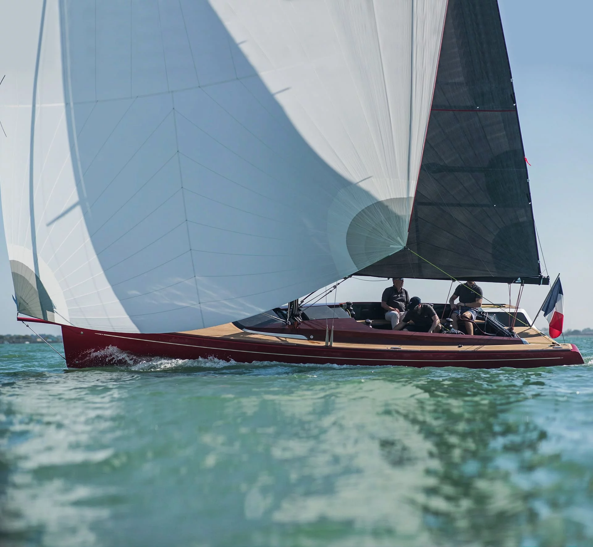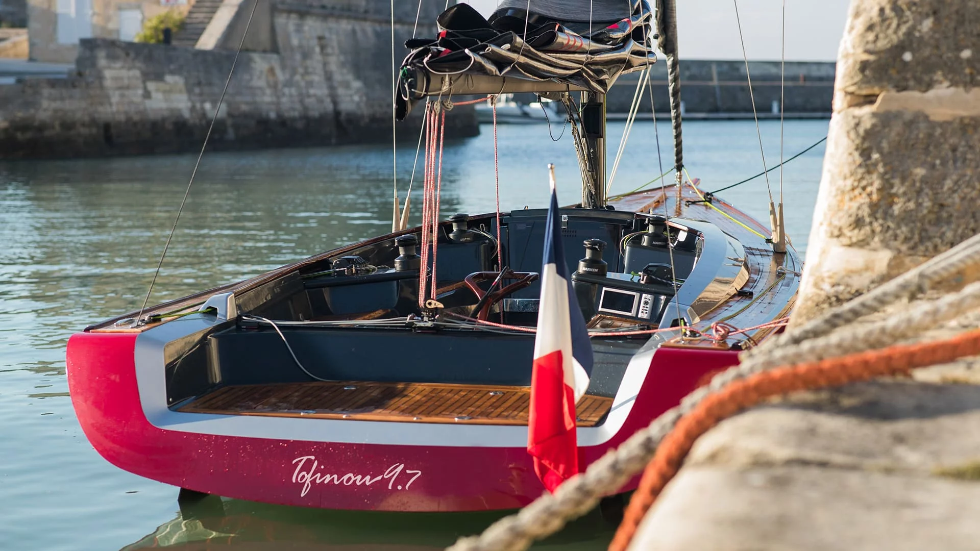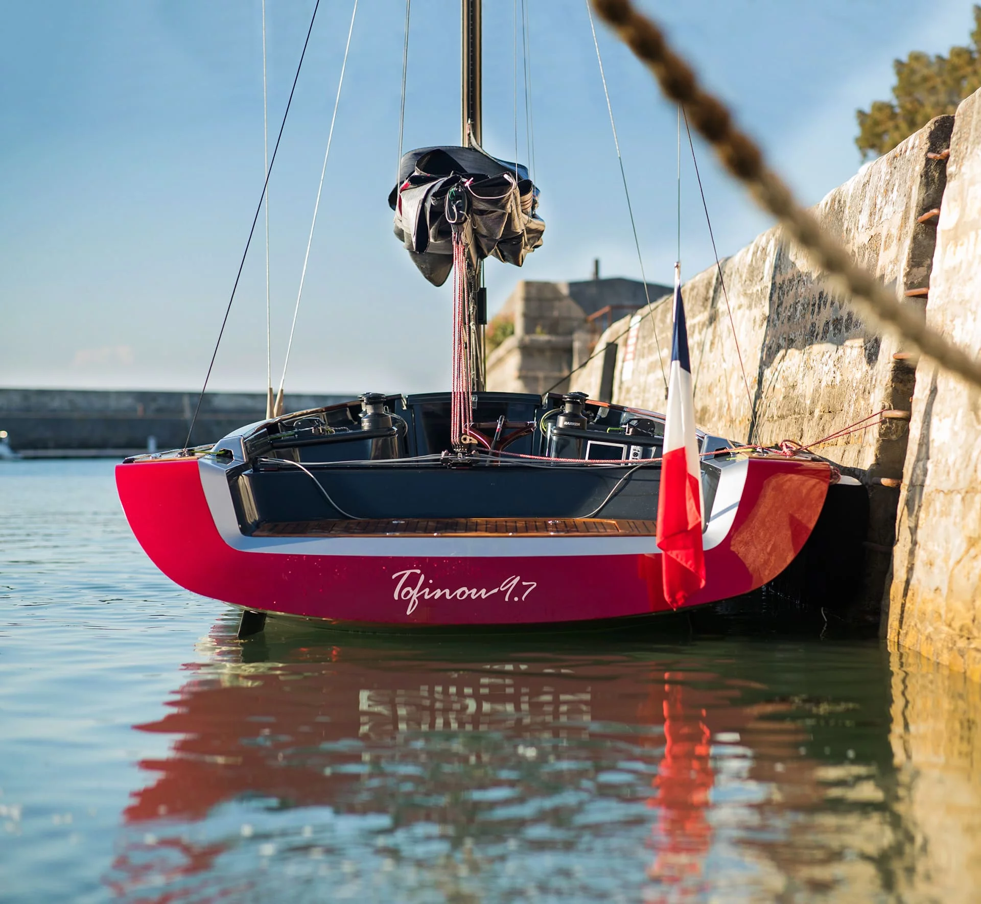 With this model, the Tofinou Shipyard has developed a “neo-classical” style thanks to the work of architect Michele Molino and the shipyard’s design office. The deck layout, inspired by Peugeot Design, is adaptable for solo or crewed sailing. The Tofinou 9.7 features an ergonomic and safe cockpit extending onto a rear swim platform.