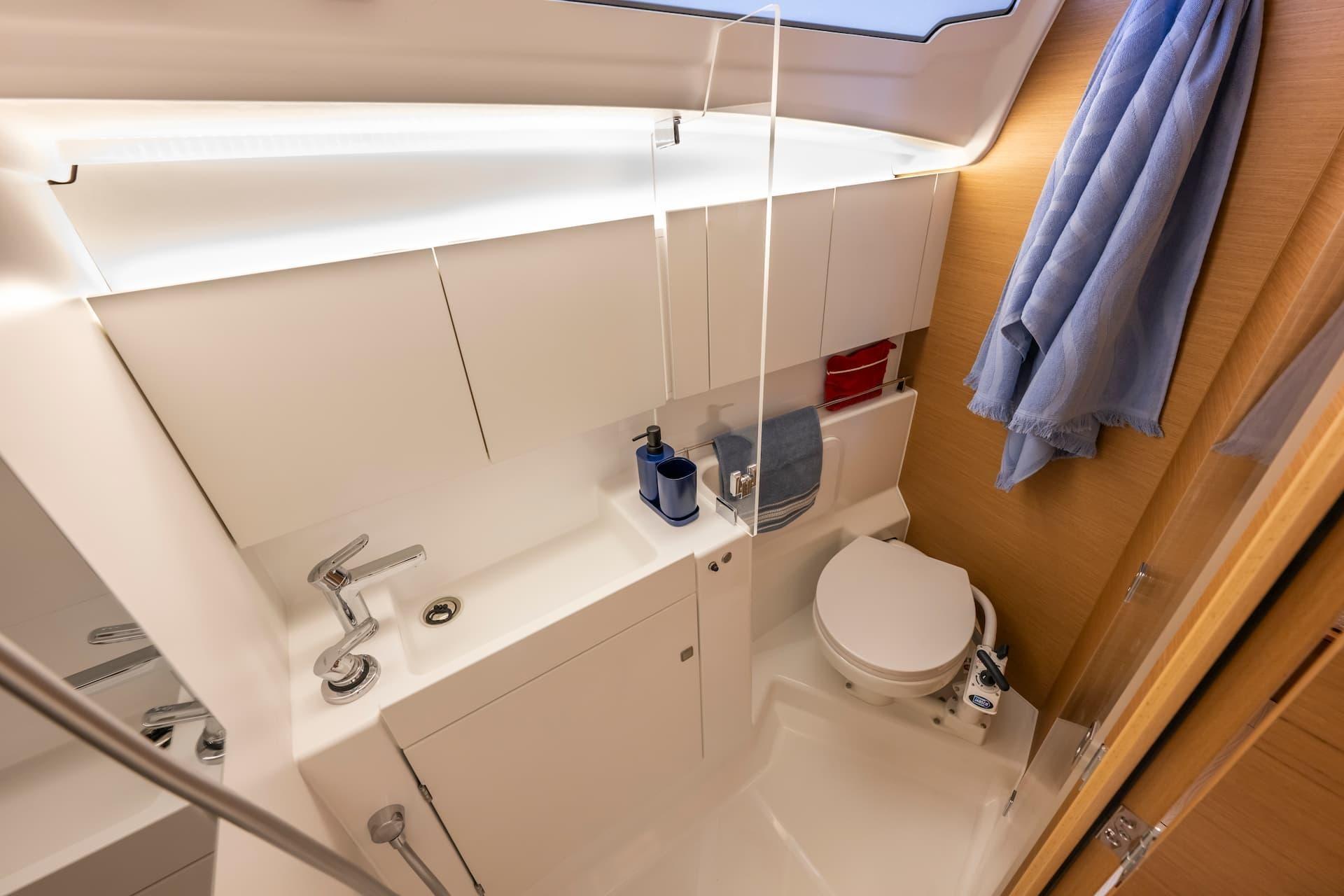 Step below deck and discover a bright, inviting interior with wide hull windows, elegant finishes, and smart storage throughout. The three-cabin, one head layout is ideal for families or cruising couples, offering both space and functionality.