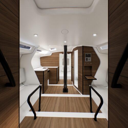 To support its dual-purpose versatility, the XR 41 features modular interior components that can be removed or reinstalled with ease. Key cruising elements — such as sections of the galley or lockers in the forward and aft cabins — can be quickly taken out for race mode and put back in for cruising comfort.