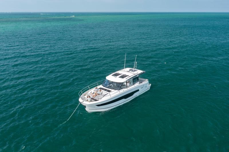 Jeanneau aimed to make handling this 40-foot boat exceptionally easy, putting all the controls all at your fingertips for enhanced accessibility and maneuverability. Taking inspiration from larger yachts, this new model is equipped with options that rival the larger models: joystick, (optional) gyroscopic stabilizer, air conditioning, generator, and more. Her stable hull enables quick planning, for minimal bow rise and level cruising and enjoying comfortable cruises even at reduced speed. With a high-performance, reliable outboard engines delivering triple 300 HP, the NC 1295 Coupe is a safe, secure boat for moments of pure happiness on the water.