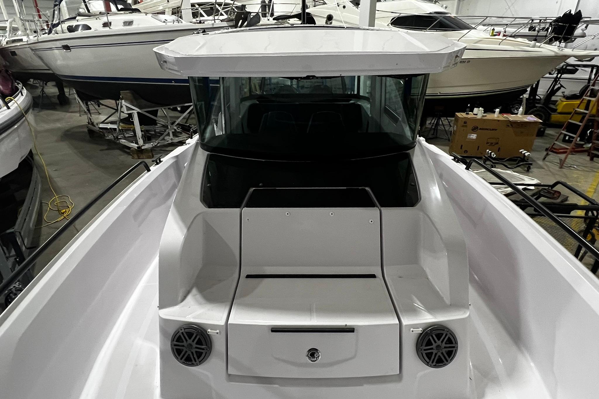 This 2025 Axopar 29 XC Cross Cabin is designed for real-world adventure boating, offering enclosed protection, confident performance, and smart use of space. The Cross Cabin layout provides shelter when needed while maintaining easy access to the deck and social areas, making it well suited for Great Lakes conditions and extended days on the water.