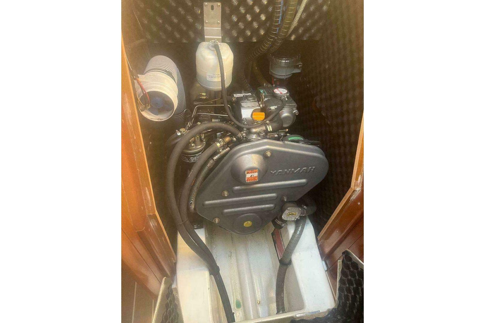 Fully soundproofed engine compartment with engine access behind stairwell and from aft cabin