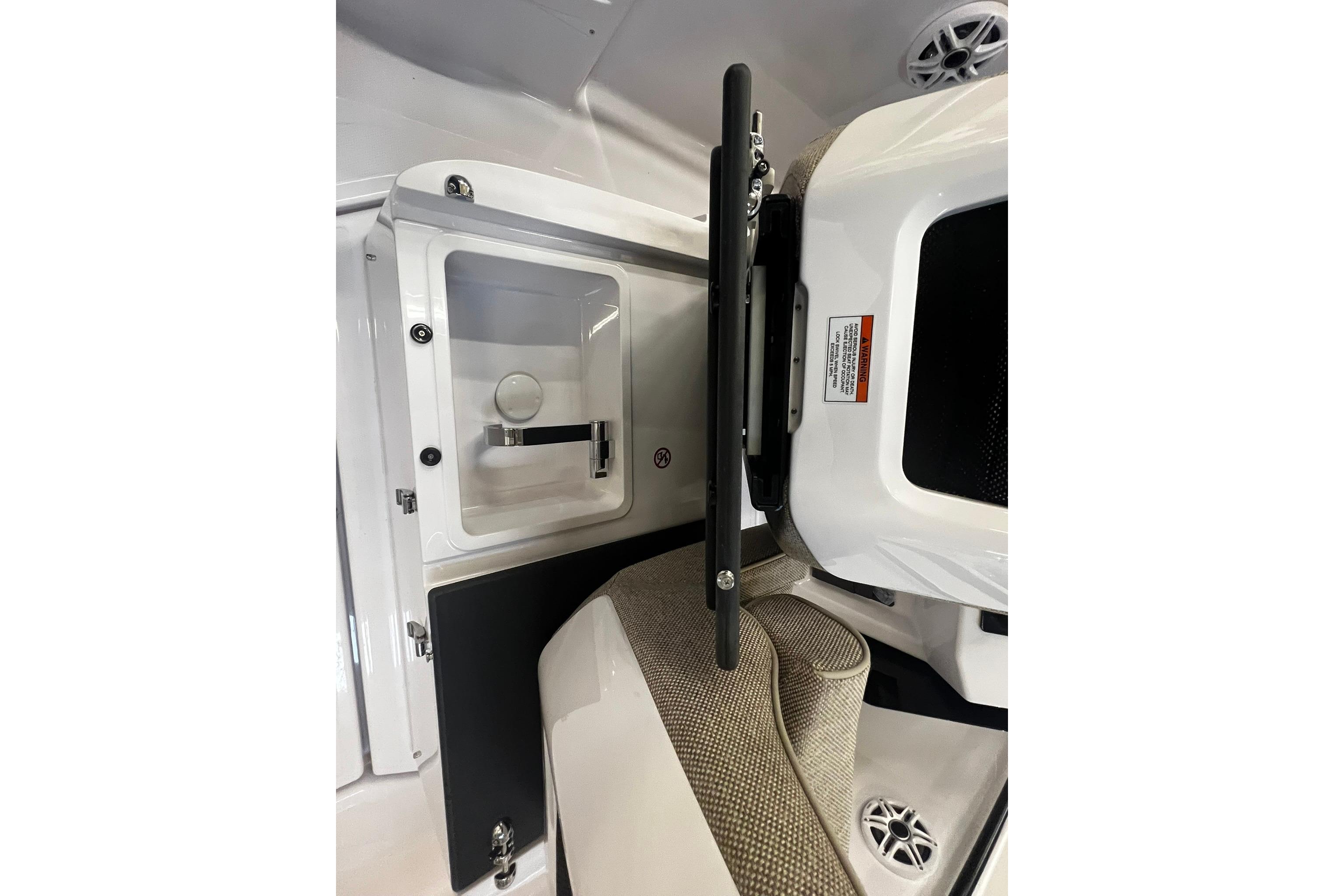 Designed so that it takes nothing away from the thrill and sheer enjoyment of the open Axopar 22 T-Top takes the ownership experience further. The all-weather T-Top roof consists of a fixed canvas top within a GRP surround, mounted to a raked-back, cool-looking, black painted aluminium targa-frame.
