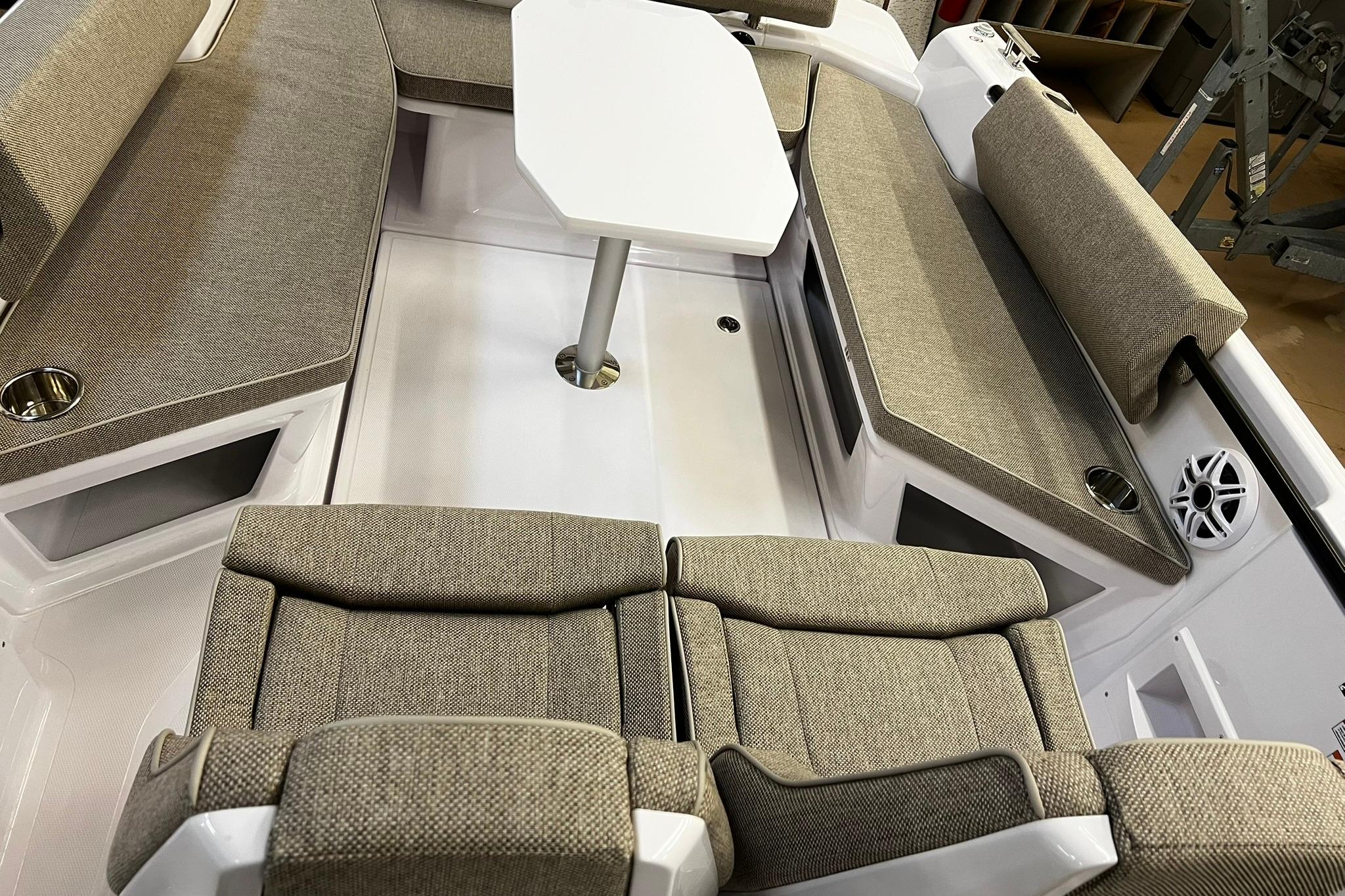 The upholstery consists of exclusive and subtle yet stylish detailing with accentuated patterns and a structured feel of marine fabrics. The fabric keeps the interior and lounging areas at comfortable temperatures, even on the warmest summer days.