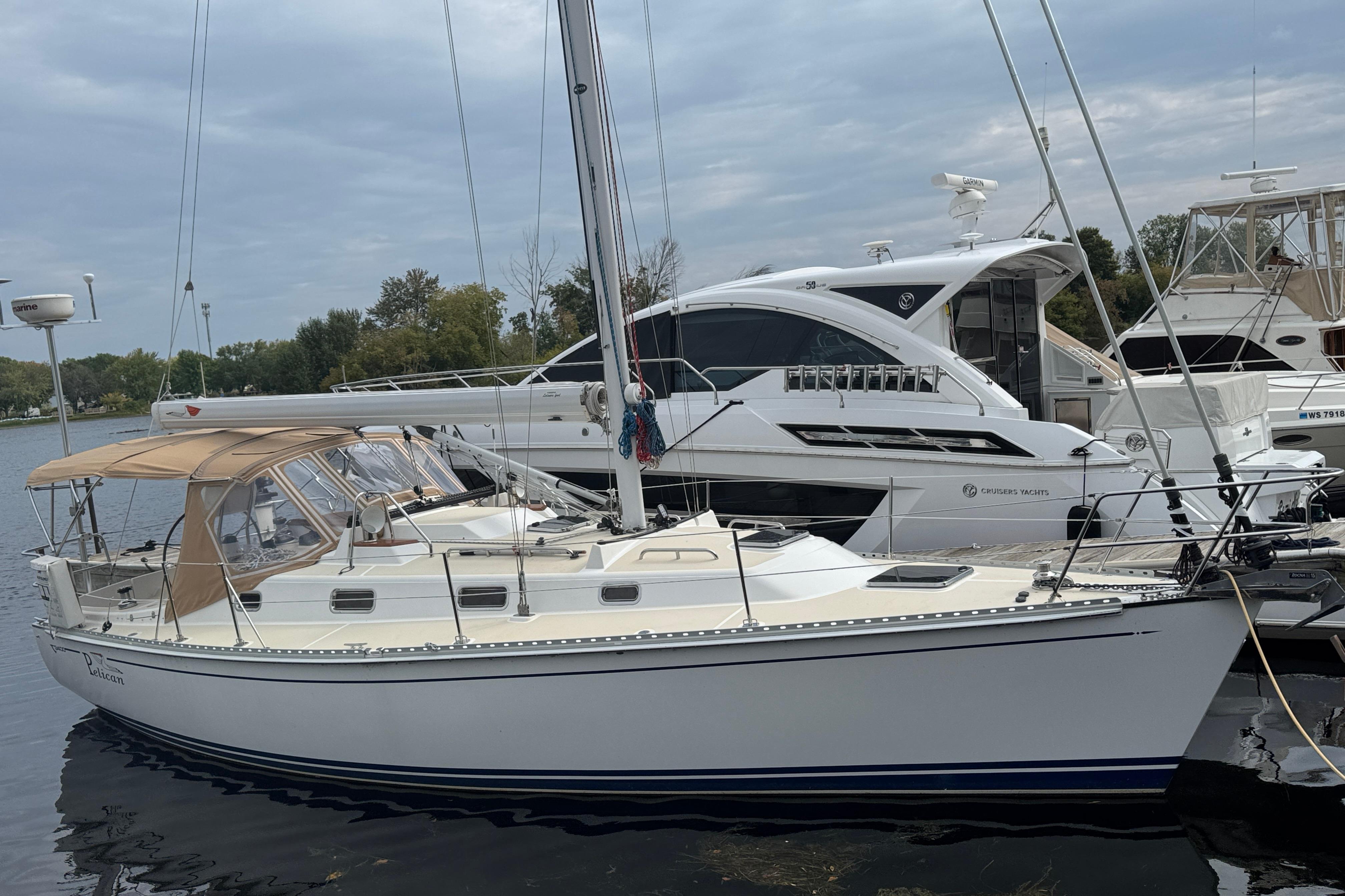 Equipped with bow thruster, generator, air conditioning, full enclosure, electric winch, and electric windlass, Pelican offers true single- or short-handed ease. Her upgraded sail inventory, comprehensive Raymarine electronics suite, and thoughtful owner enhancements make her a standout opportunity for a buyer seeking performance cruising without compromise.
